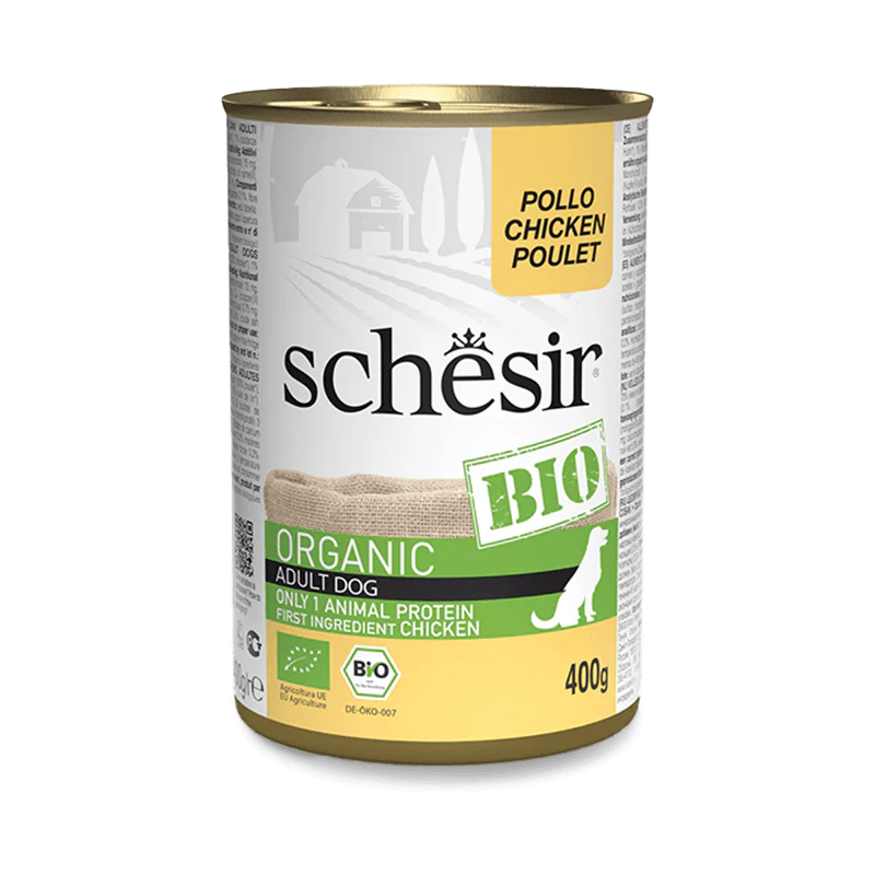 Schesir Bio is the range of minimally processed, complete and balanced wet foods certified as organic by certifying agencies that are recognised and authorised by the competent European authorities. The main ingredient of each product is the only one of animal origin of the recipe.