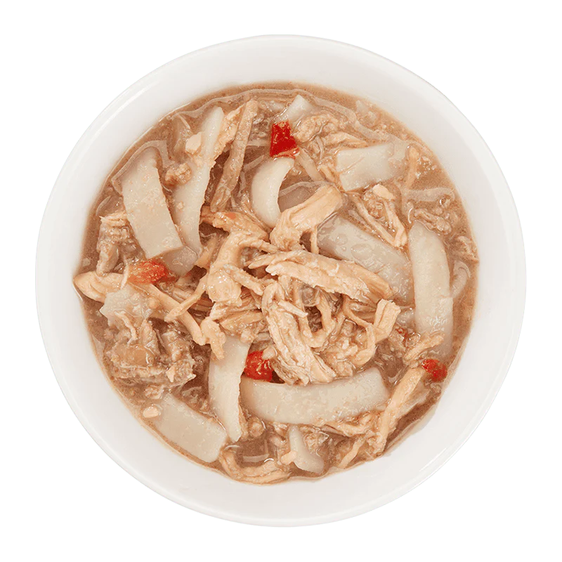 Chicken and brown rice plus tasty and original vegetables: a complete and balanced meal based on the celebrated Stir Fry of Asian cuisine, offering your dog the quality of the ingredients in a delicious combination of flavours.