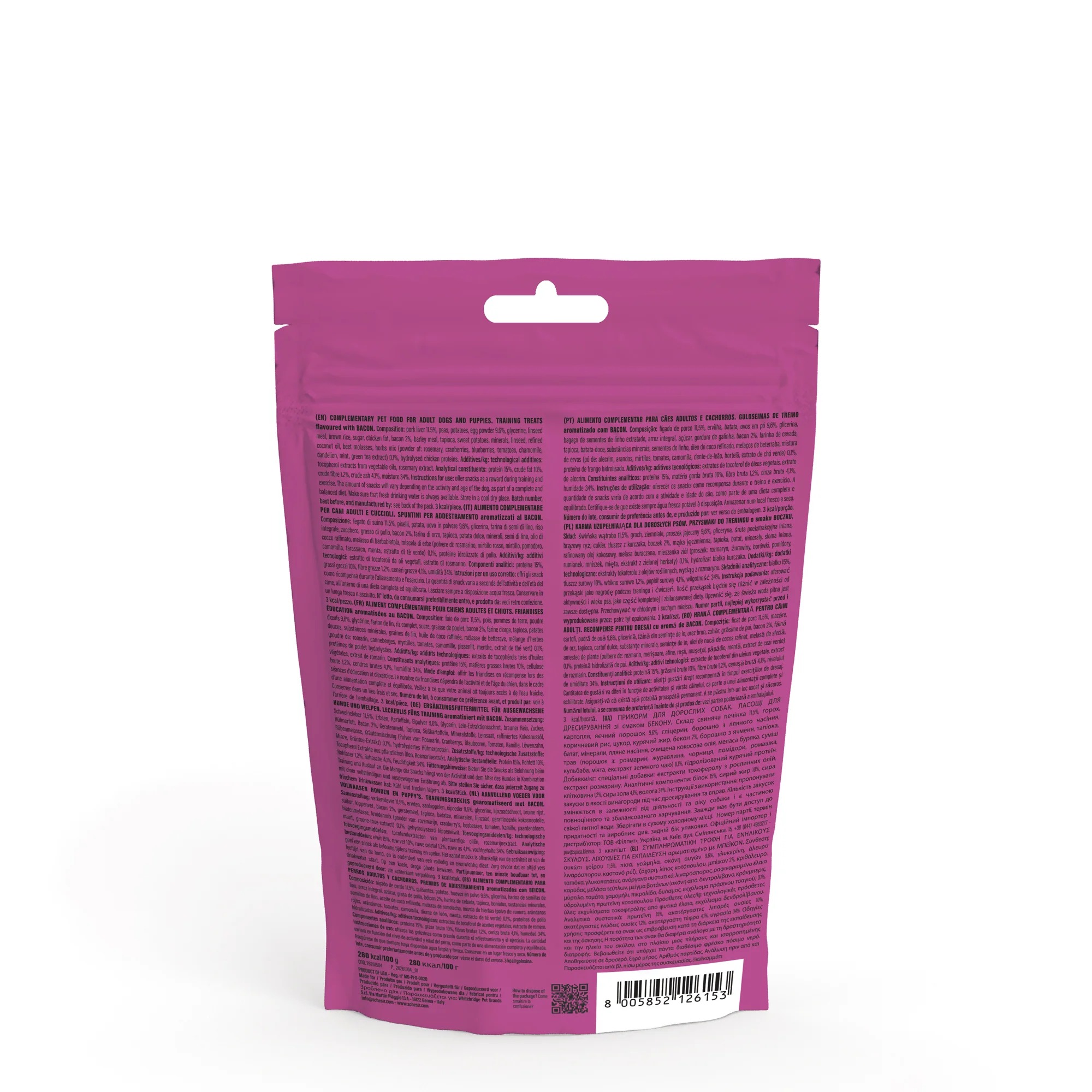 Train your dog with these soft and chewy treats, flavoured with bacon for a taste explosion, and with a low calories content, to reward your new friend without worries.