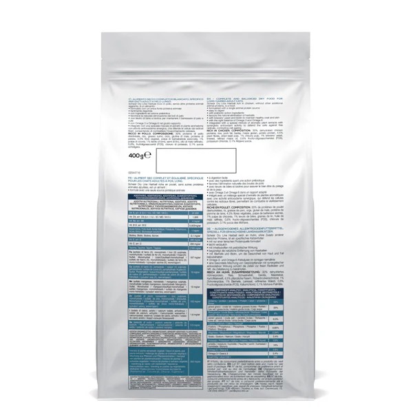 Formulated with a single source of animal protein (chicken), which is also the first ingredient, this is a tasty, easily digestible, complete and balanced meal to satisfy the nutritional needs of adult longhaired cats in particular. It has a higher fibre content than the other products in the line to favour natural elimination of hairballs.