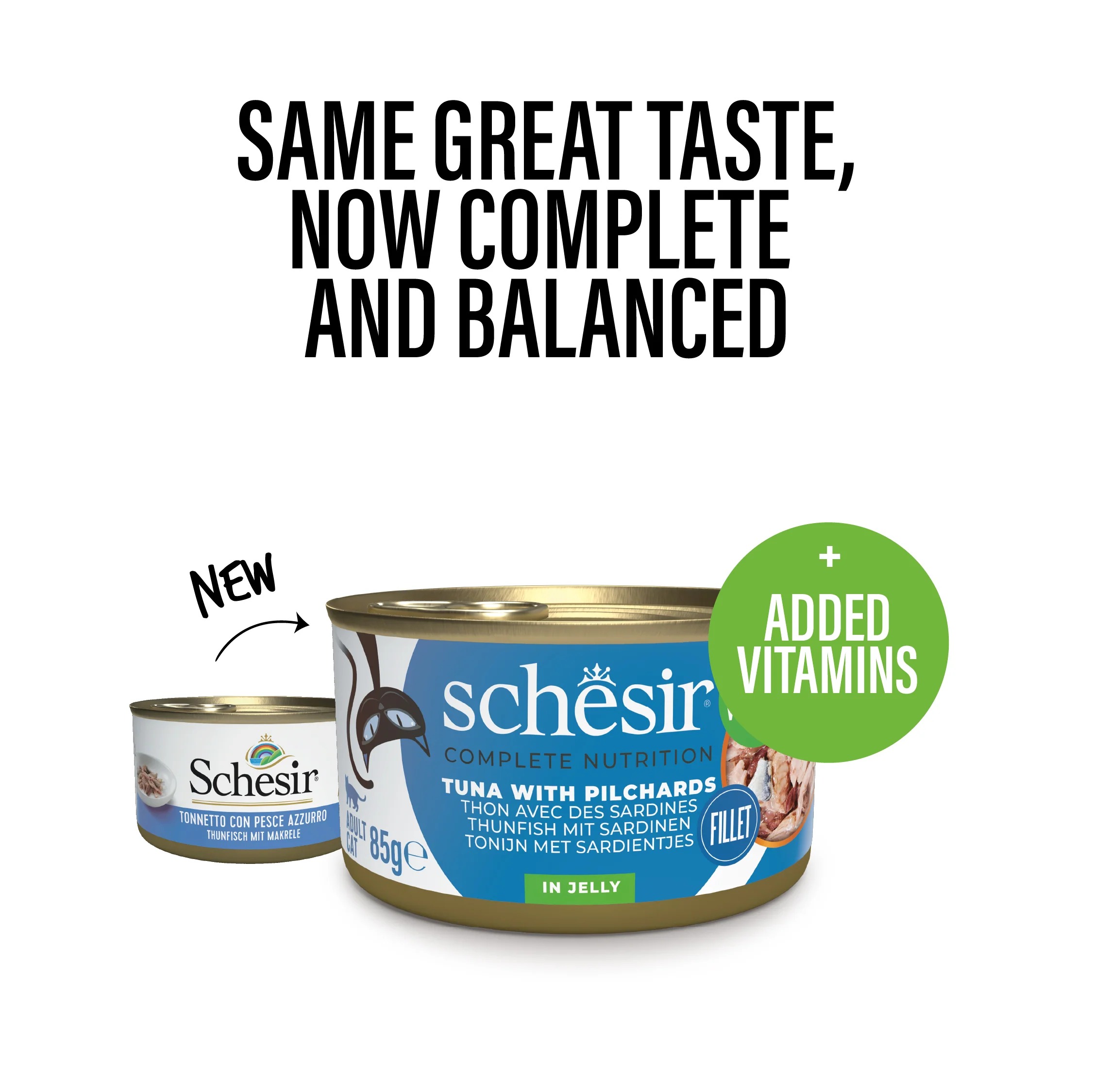 Schesir improves natural nutrition with wet cat food that combines high-quality ingredients in complete and balanced meals. Each recipe is rich in vitamins, minerals and taurine, essential elements for your cat's well-being and vitality, and designed to provide all the essential nutrients your cat needs while maintaining the irresistible taste that satisfies even the most demanding palates.