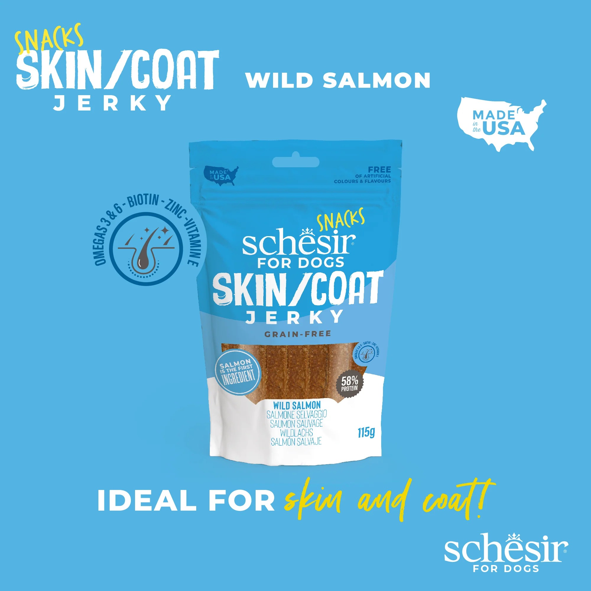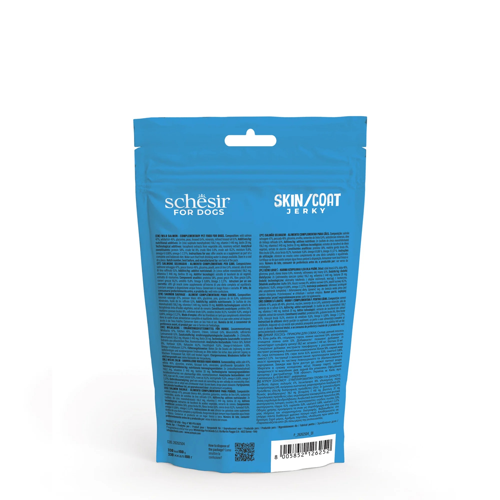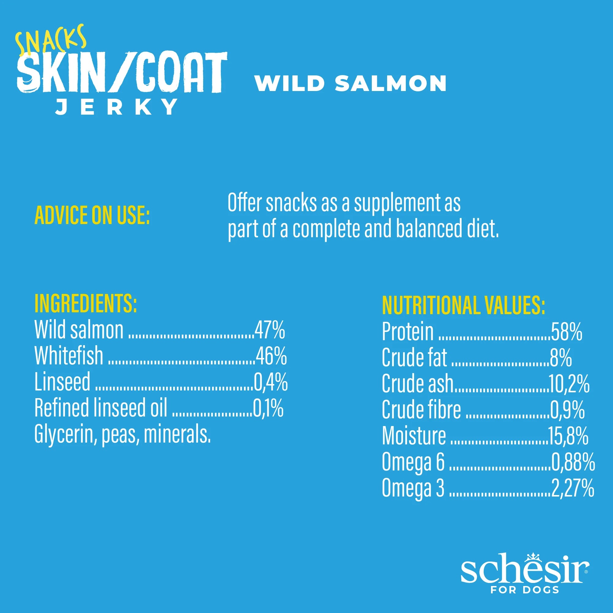 Functional snacks with wild salmon as first ingredient and with 58% proteins, ideal as a solution to keep skin & coat bright.