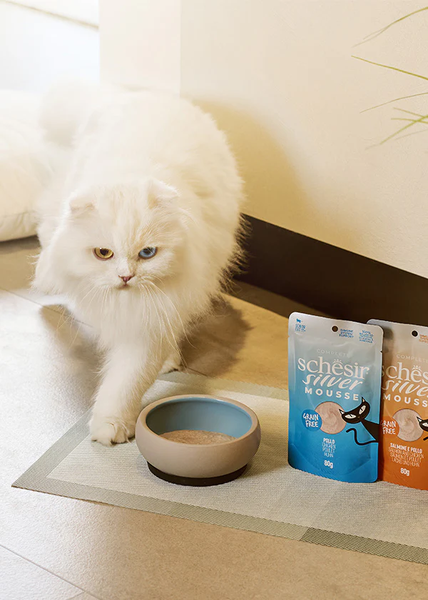 Schesir Silver is the range of minimally processed, complete and balanced wet foods that help to keep elderly cats healthy and happy, with special formulas designed specifically for them.